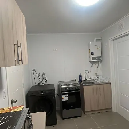 Cozinha totalmente equipada com chaleira elétrica, refrigerador e utensílios de cozinha está incluída nesta propriedade de Frutillar para que os hóspedes possam cozinhar por si próprios.